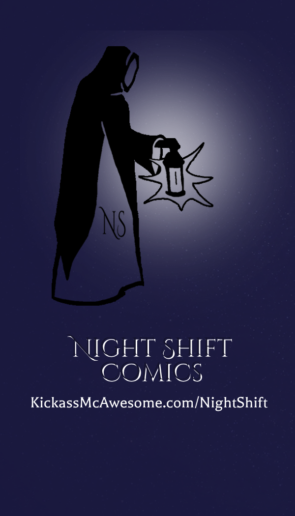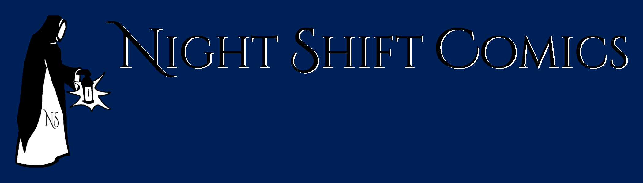 This project is how the logo for Night Shift Comics came to be. Starting from a draft sketch from Christina Savino I made several different variations on the initial design, which you can see in this handy matrix graphic below.